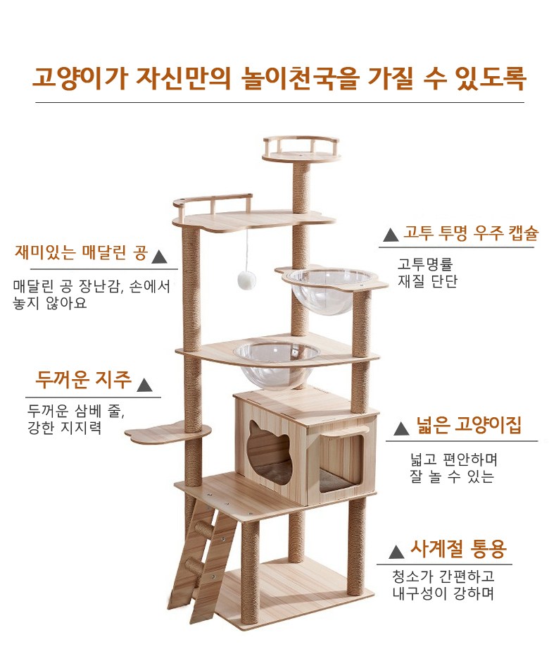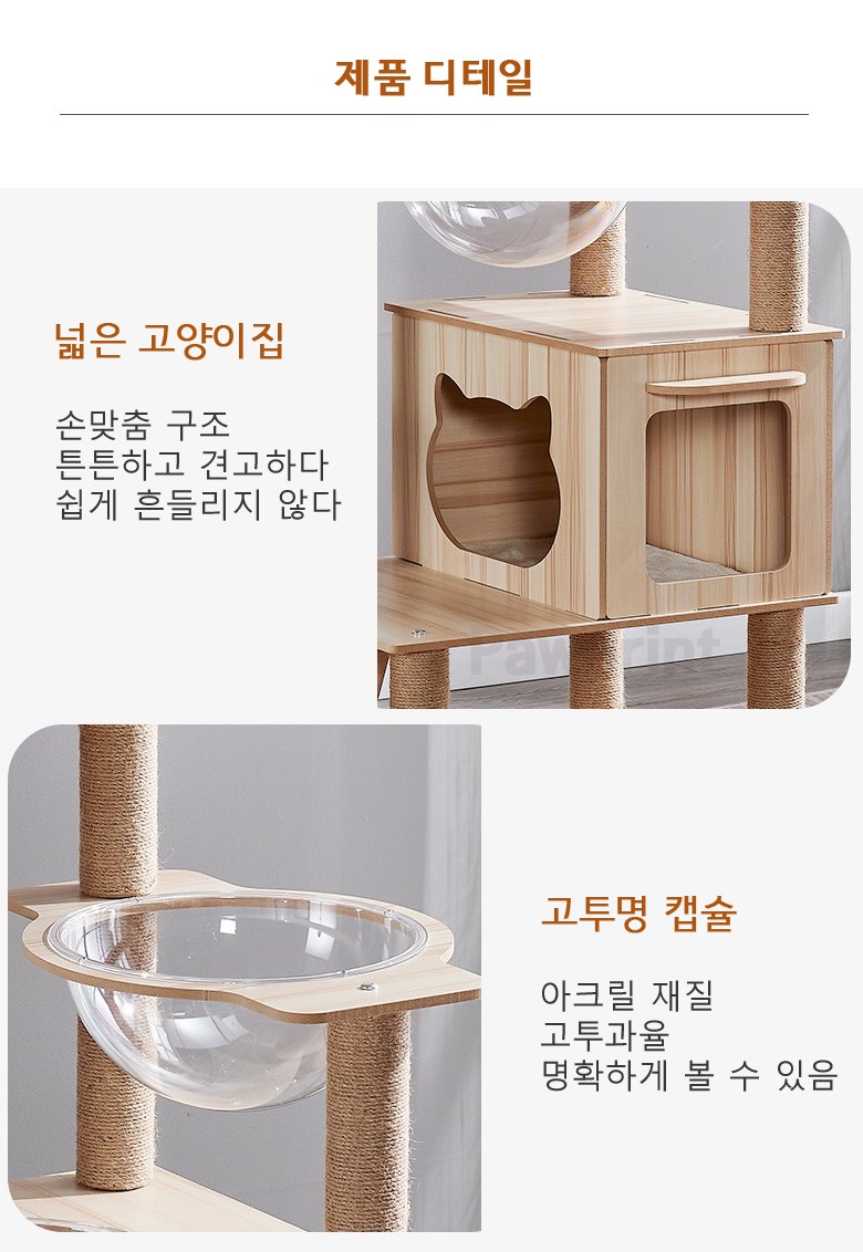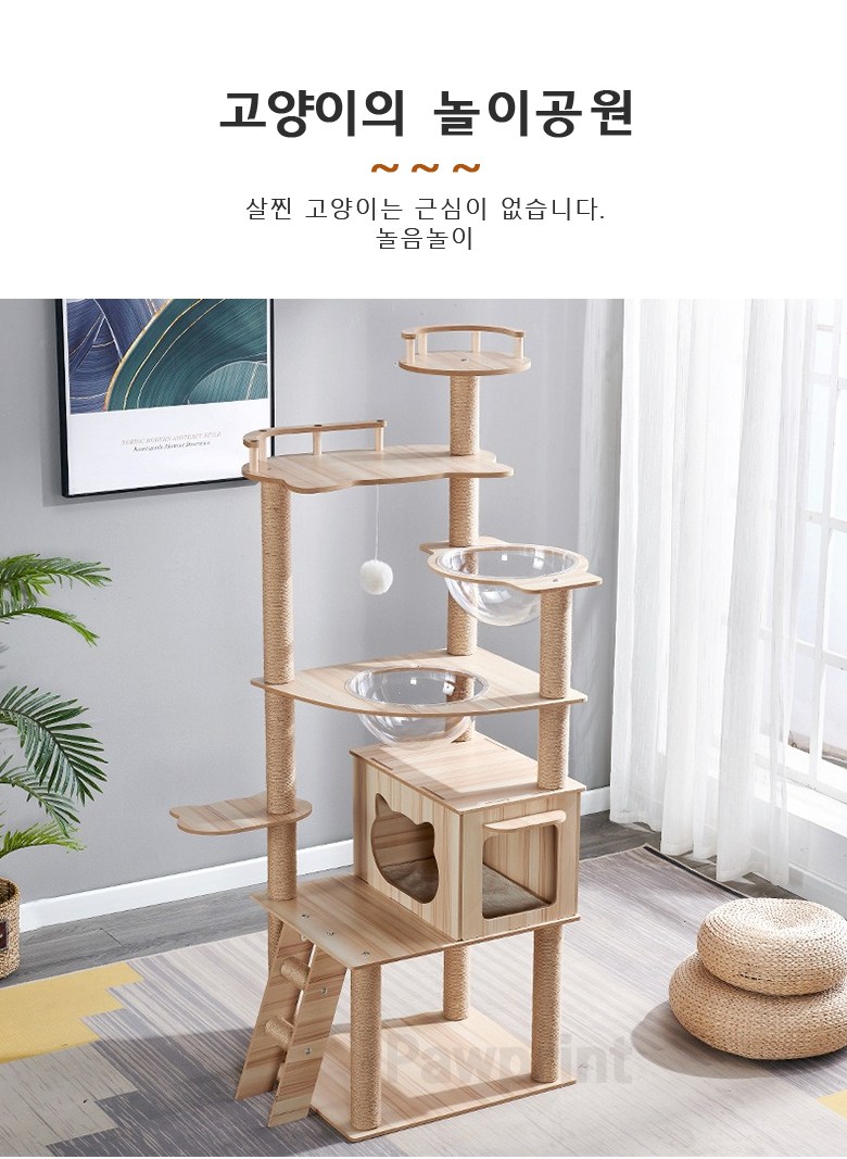 Pawprint 캣타워 고양이 스크래쳐 안정적인 원목 구조로 튼튼하고 견고함 다층 구조로 다양한 놀이와 휴식 공간 제공 대형 및 소형 고양이 모두 사용 가능 실내 인테리어에