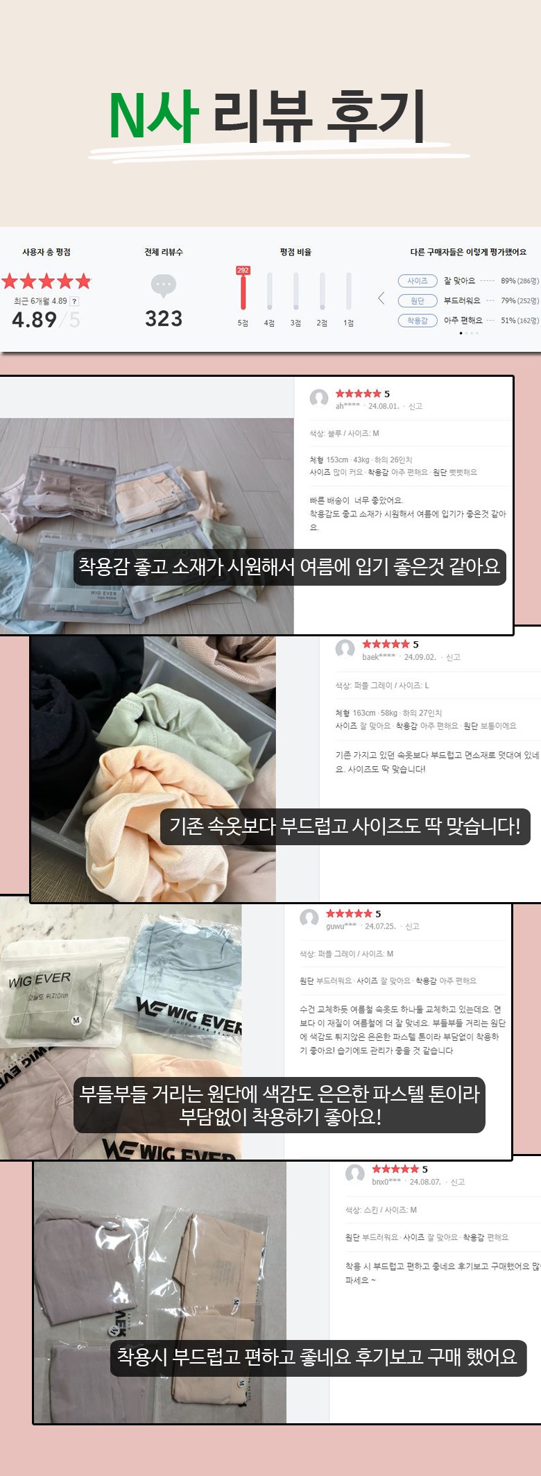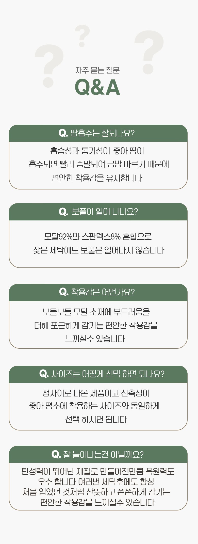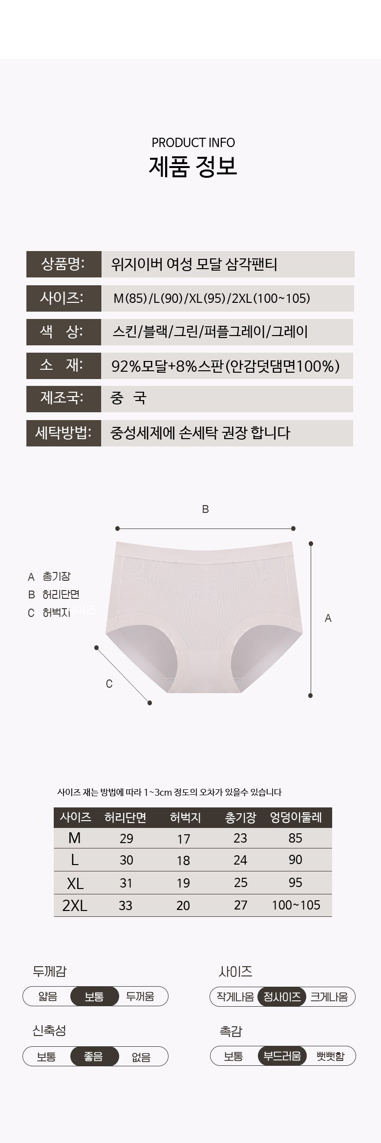 | 제품 소재 | 모달 92%,스판 8% | 색상 | 블랙,그레이,스킨,퍼플그레이,그린 |