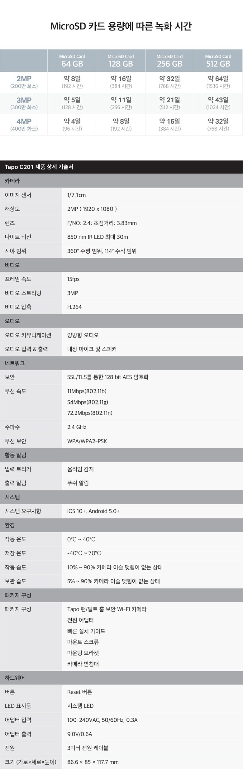 | 품명 및 모델명 | 티피링크 Tapo 200만화소 원격회전 가정용 카메라 블랙 / Tapo C201 | KC 인증정보 | 본품: R-C-TPN-TapoC200 어댑터: HU101336-24002, R-R-TPG-T090060-2H1V10 |