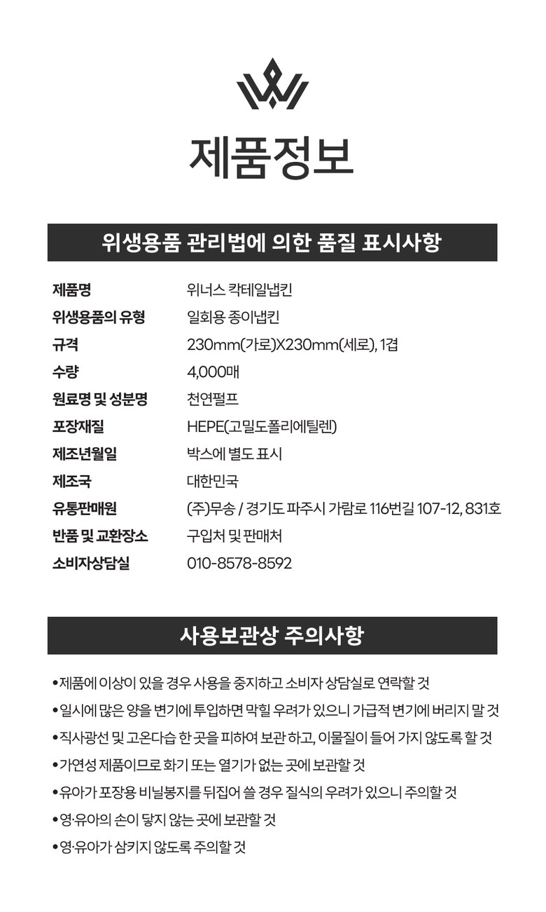| 소비자상담 관련 전화번호 | 상품 상세페이지 참조 | ||