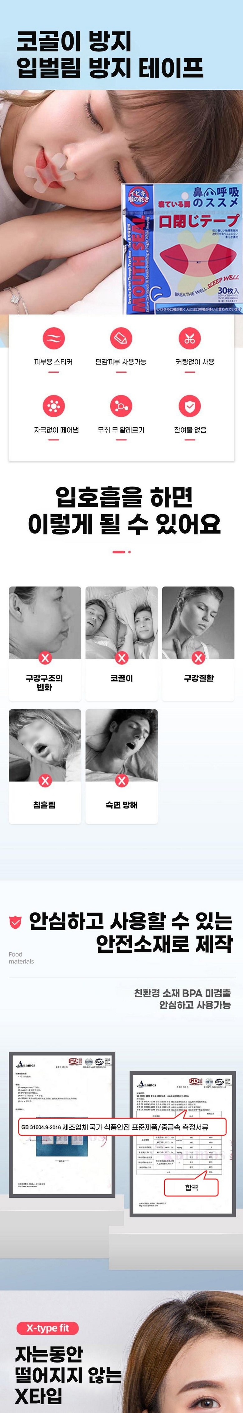 | 품명 및 모델명 | 코골이 방지 입벌림 방지 테이프 | 인증/허가 사항 | 해당없음 |