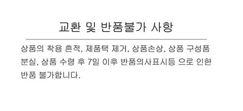 - ㆍ모니터 해상도의 차이로 인해 색상이나 이미지가 실제와 달라, 고객이 단순 변심으로 교환/반품을 무료로 요청하는 경우