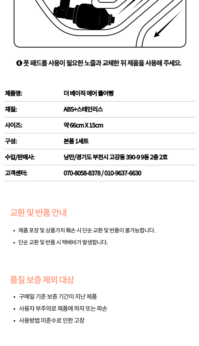 | 소비자상담 및 교환반품 문의 | 쿠팡고객센터 1577-7011 배송 및 환불/교환에 대한 문의는 마이쿠팡-고객센터 내 상담하기를 이용해주세요. | ||