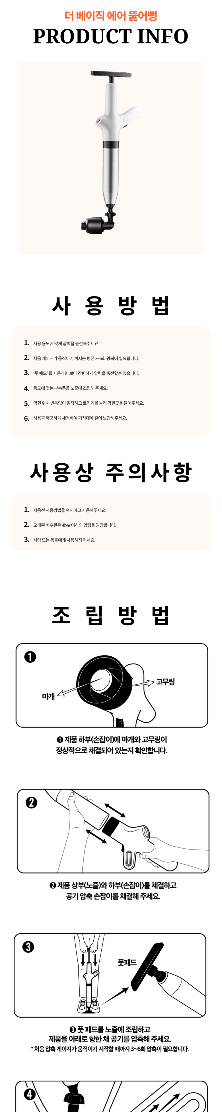 | 품명 및 모델명 | 더 베이직 뻥클리너 뚫어뻥 6세대 | 인증/허가 사항 | 상품 상세페이지 참조 |