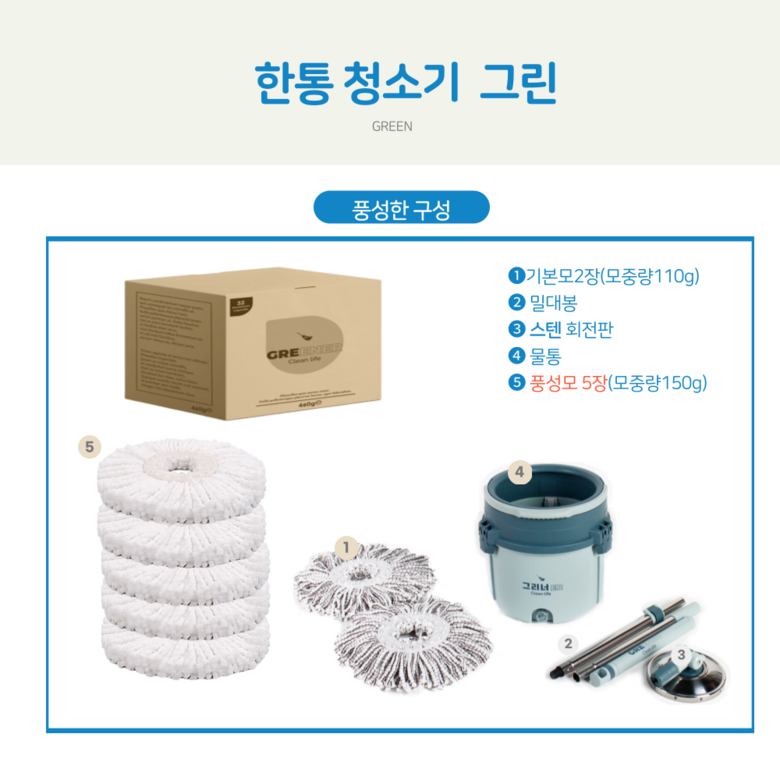 | 제조국(원산지) | 상품 상세페이지 참조 | 제조자(수입자) | 그리너 |