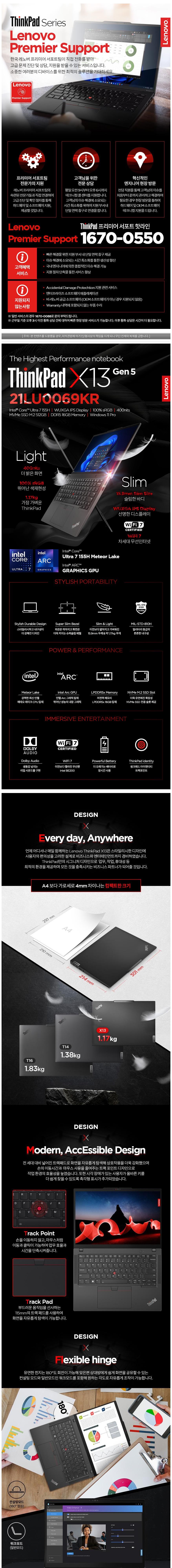 | 품명 및 모델명 | 노트북 / TP00145C (ThinkPad X13 Gen 5) | KC 인증정보 | R-R-LVK-TP00145C / XU102330-24169 |