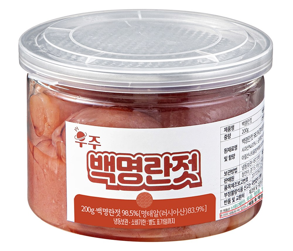 톡톡 튀는 식감이 매력적인 백명란젓이에요. 청주를 사용해 비린내를 잡고 깔끔하게 완성했답니다. 특유의 고소한 풍미와 짭조름한 감칠맛을 느껴보세요. 달걀말이에 활용하셔도 좋고, 그대로 밥이나 파스타에 올려 드셔도 맛있어요.