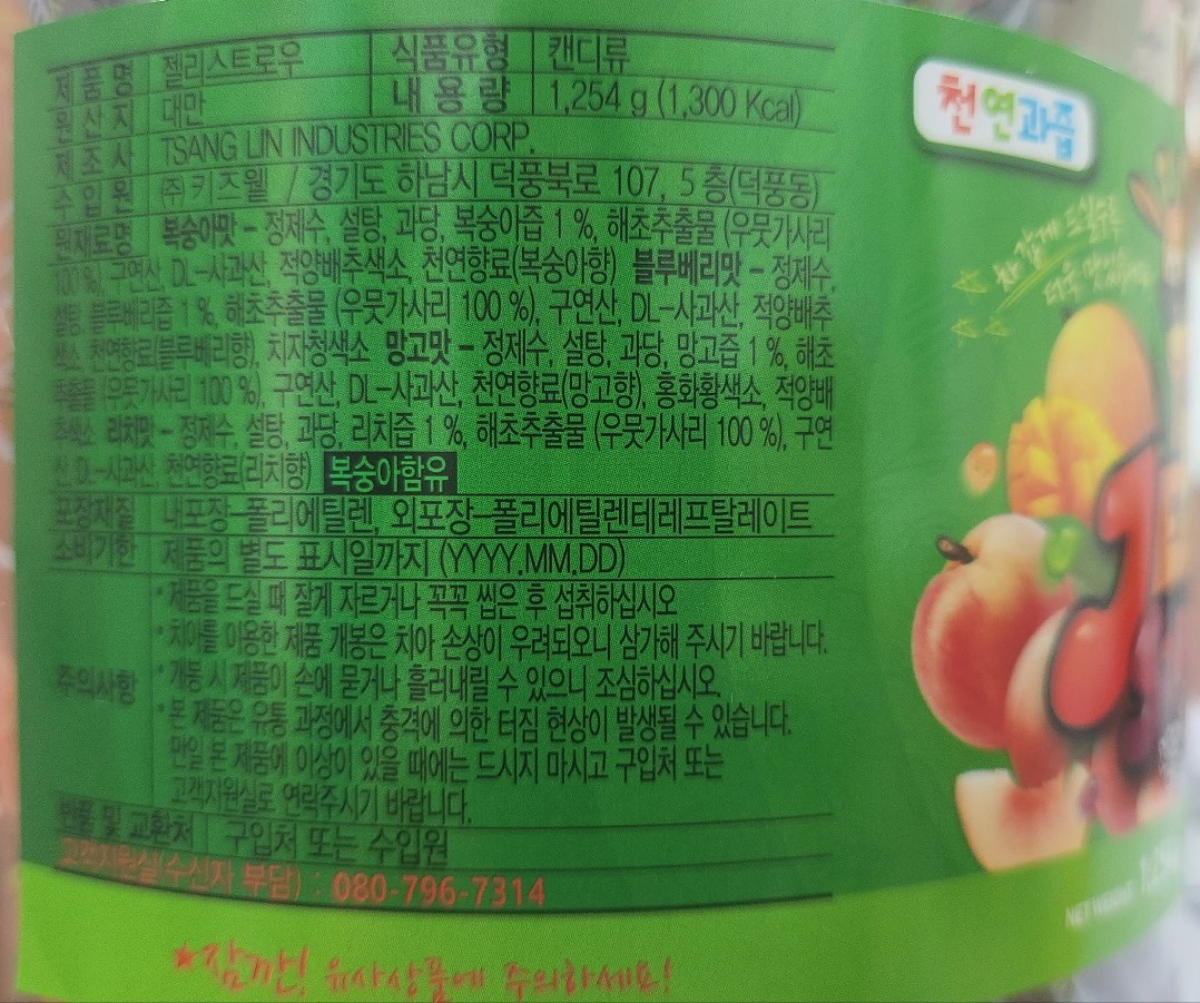 | 제품명 | 젤리스트로우 | 식품의 유형 | 컨텐츠참조 |