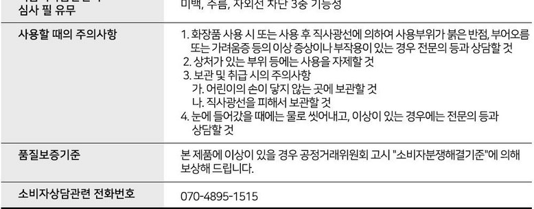| 화장품제조업자, 화장품책임판매업자 및 맞춤형화장품판매업자 | 상품 상세페이지 참조 | 제조국 | 상품 상세페이지 참조 |