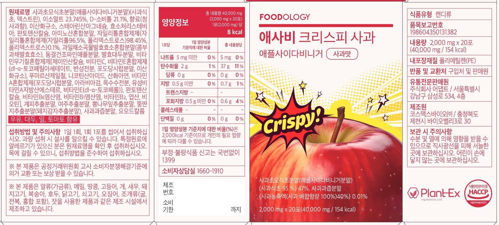 | 제품명 | 애사비 크리스피 사과 | 식품의 유형 | 컨텐츠 참조 |