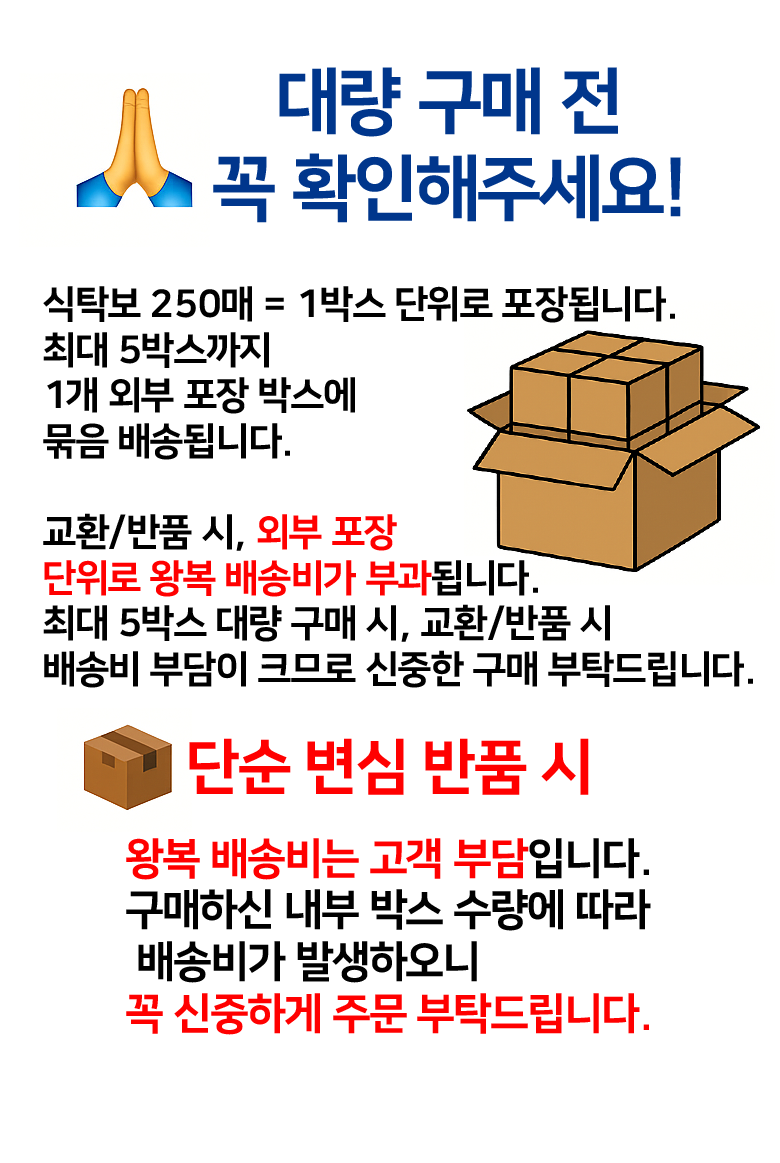 - ㆍ교환/반품에 관한 일반적인 사항은 판매자가 제시사항보다 관계법령이 우선합니다.