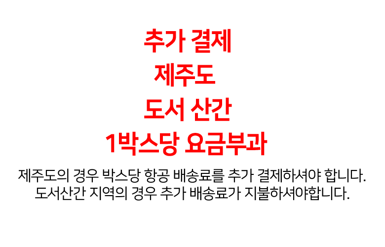 | 배송방법 | 순차배송 | 배송비 | 무료배송 · 도서산간 추가 배송비 - 제주 지역: 3,000원 - 도서산간 지역: 6,000원 |