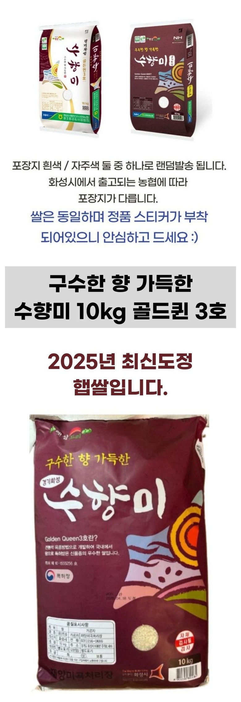 | 품목 또는 명칭 | 수향미 10kg | 포장단위별 내용물의 용량(중량),수량,크기 | 10kg |