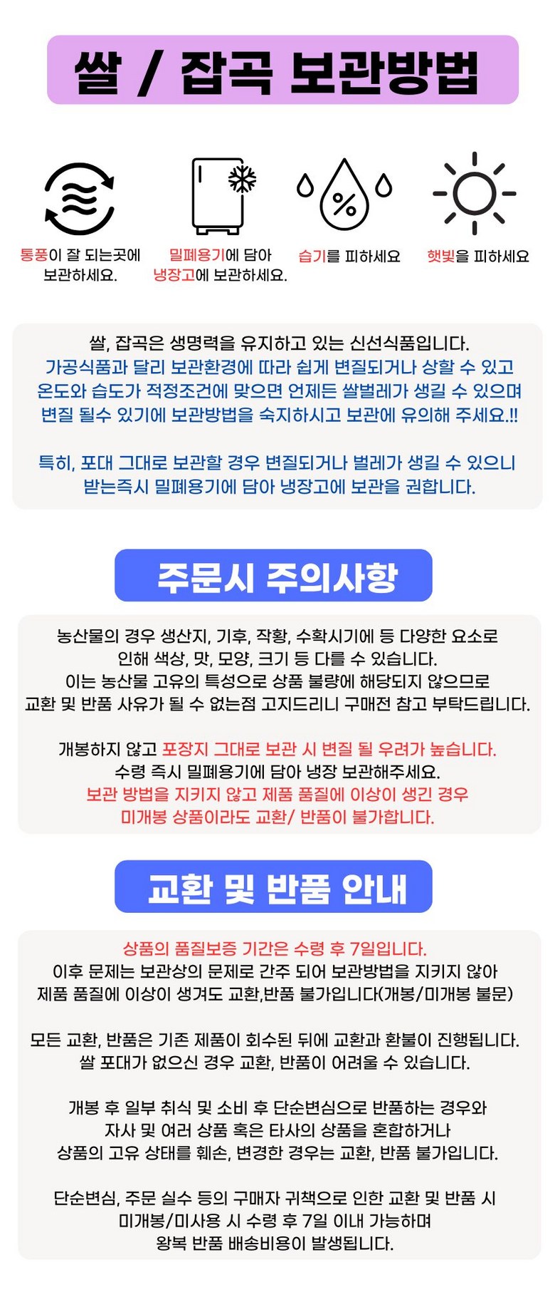- ㆍ교환/반품에 관한 일반적인 사항은 판매자가 제시사항보다 관계법령이 우선합니다.