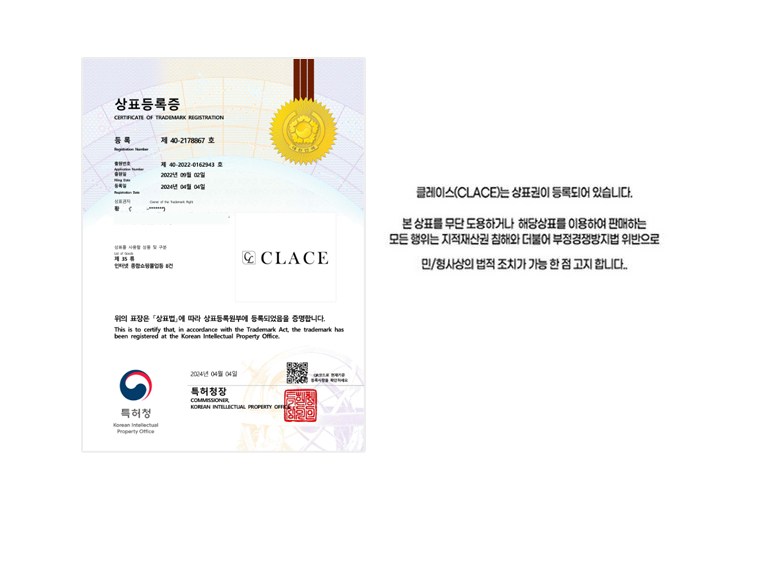 | 치수 | 상세페이지 참조 | 제조자(수입자) | 주식회사 클레이스 |