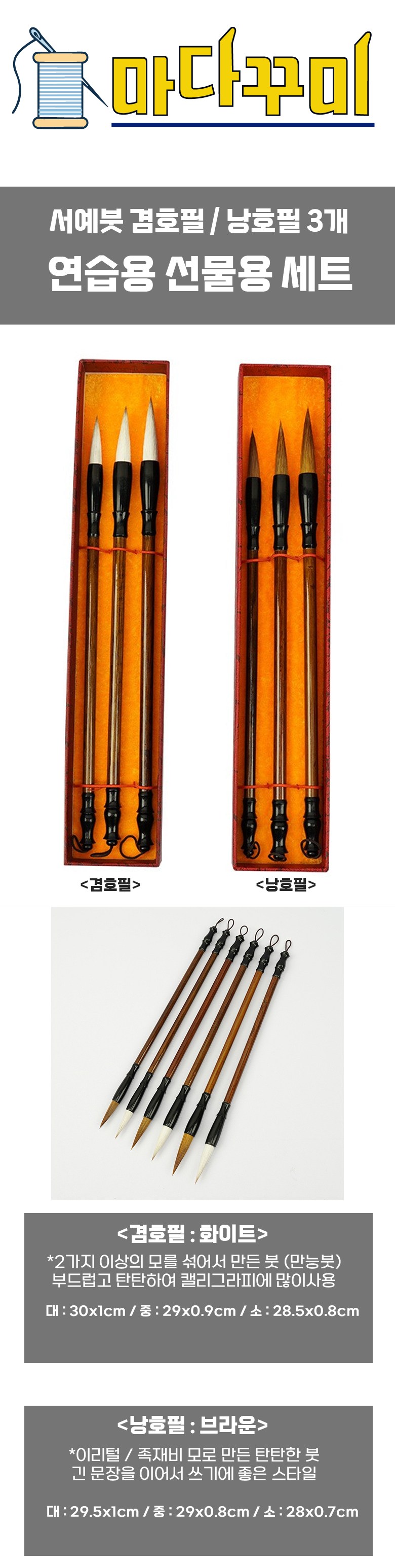 마다꾸미 연습용 낭호필 서예붓 3종, 대/중/소, 3세트