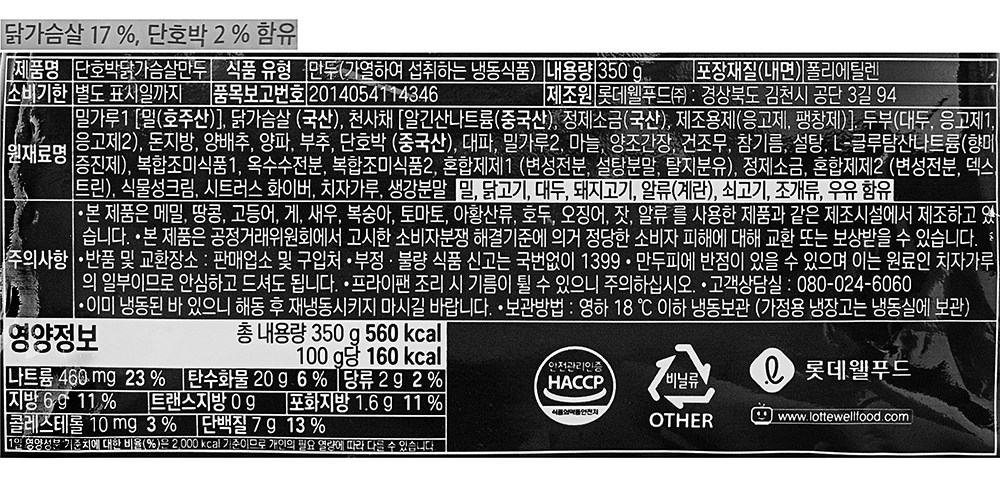 | 포장단위별 내용물의 용량(중량), 수량 | 350g*2개 | 원재료명 및 함량 | 컨텐츠 참조 |