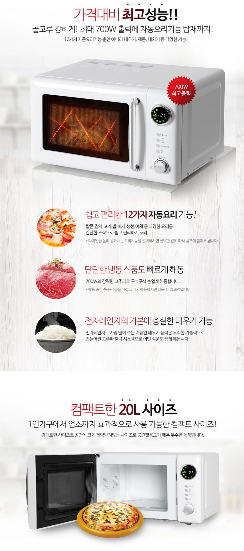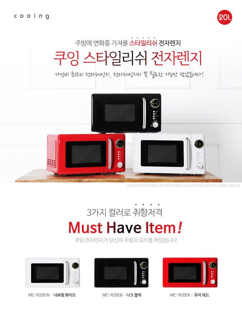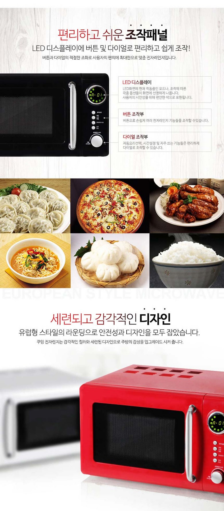 쿠잉 레트로 디자인 전자식 전자레인지 20L 미니 소형 원룸 사무실 가정용