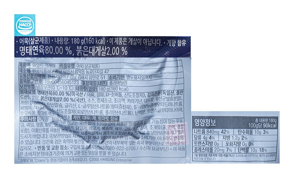 고소하고 달짝지근한 와일드 크래미예요. 두께가 두툼해 탱글탱글하고 부드러운 식감이 더욱 풍성하게 느껴지죠. 그대로 먹어도 맛있고, 노릇하게 굽거나 튀겨서 즐겨도 좋아요. 캠핑할 때 먹을 별미로도 안성맞춤이랍니다.