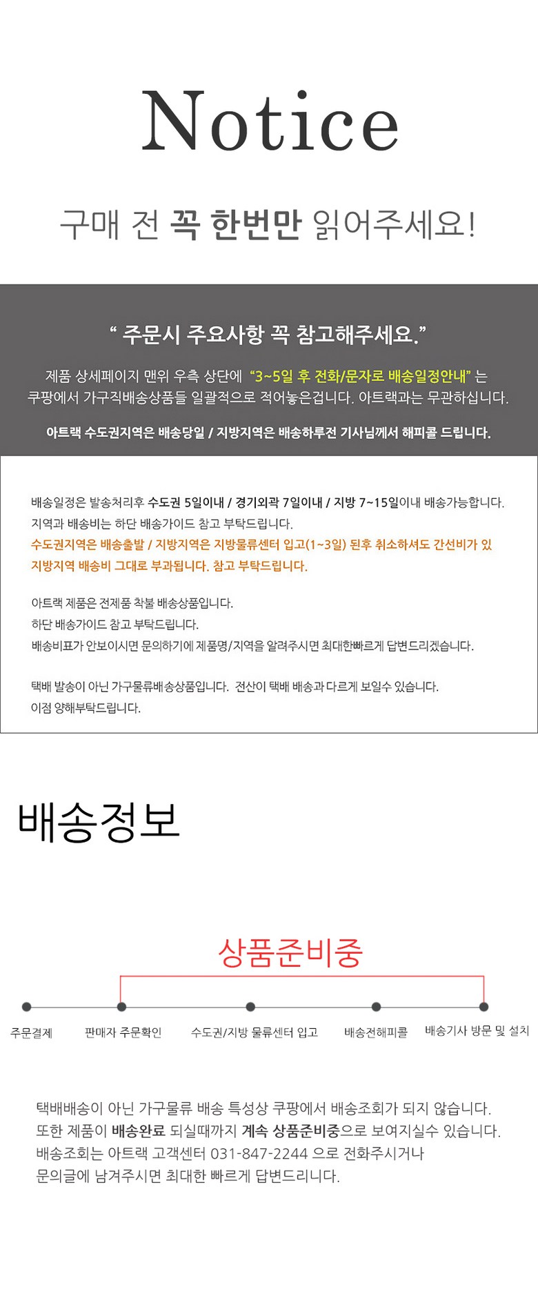 | 주요 소재 | PB,MDF,PVC다리 | 제조자(수입자) | 아트랙 |