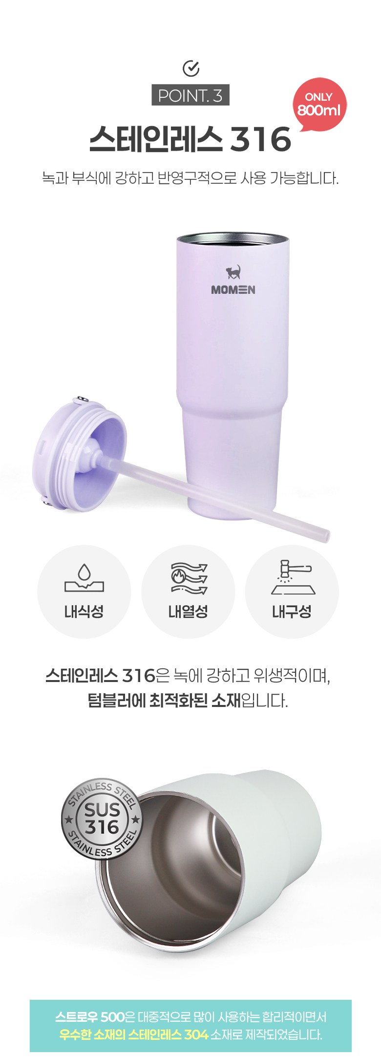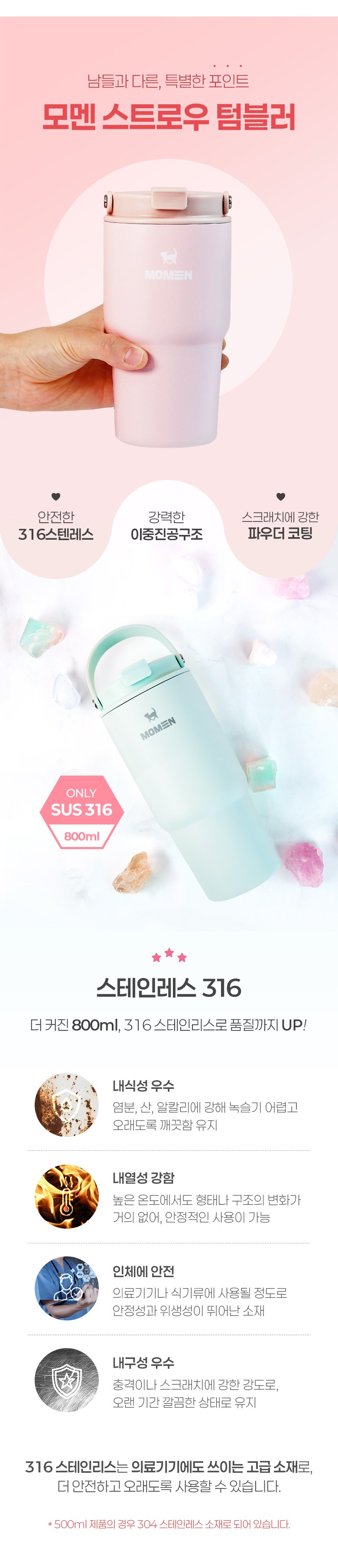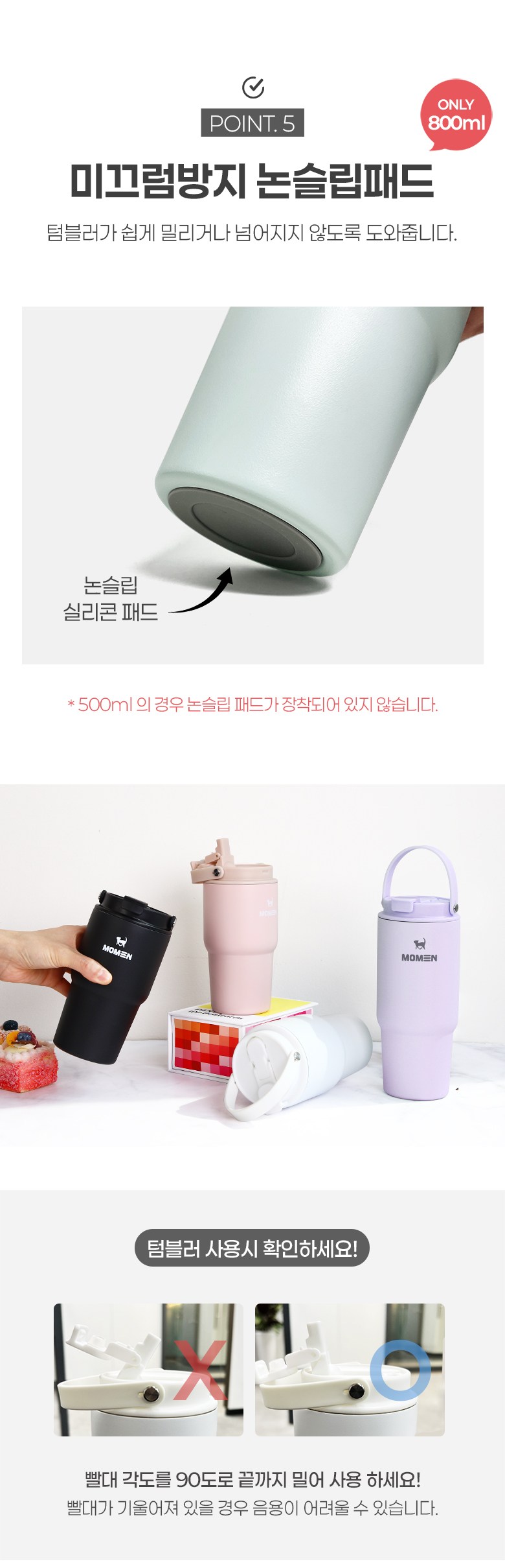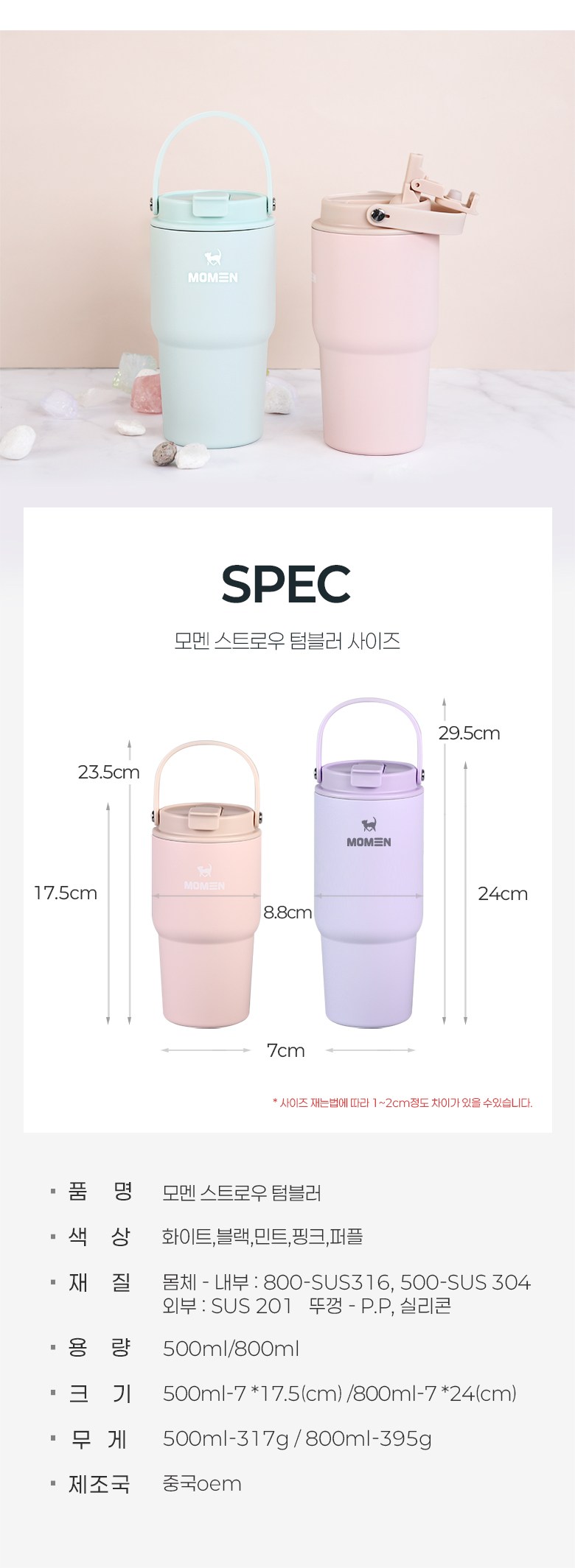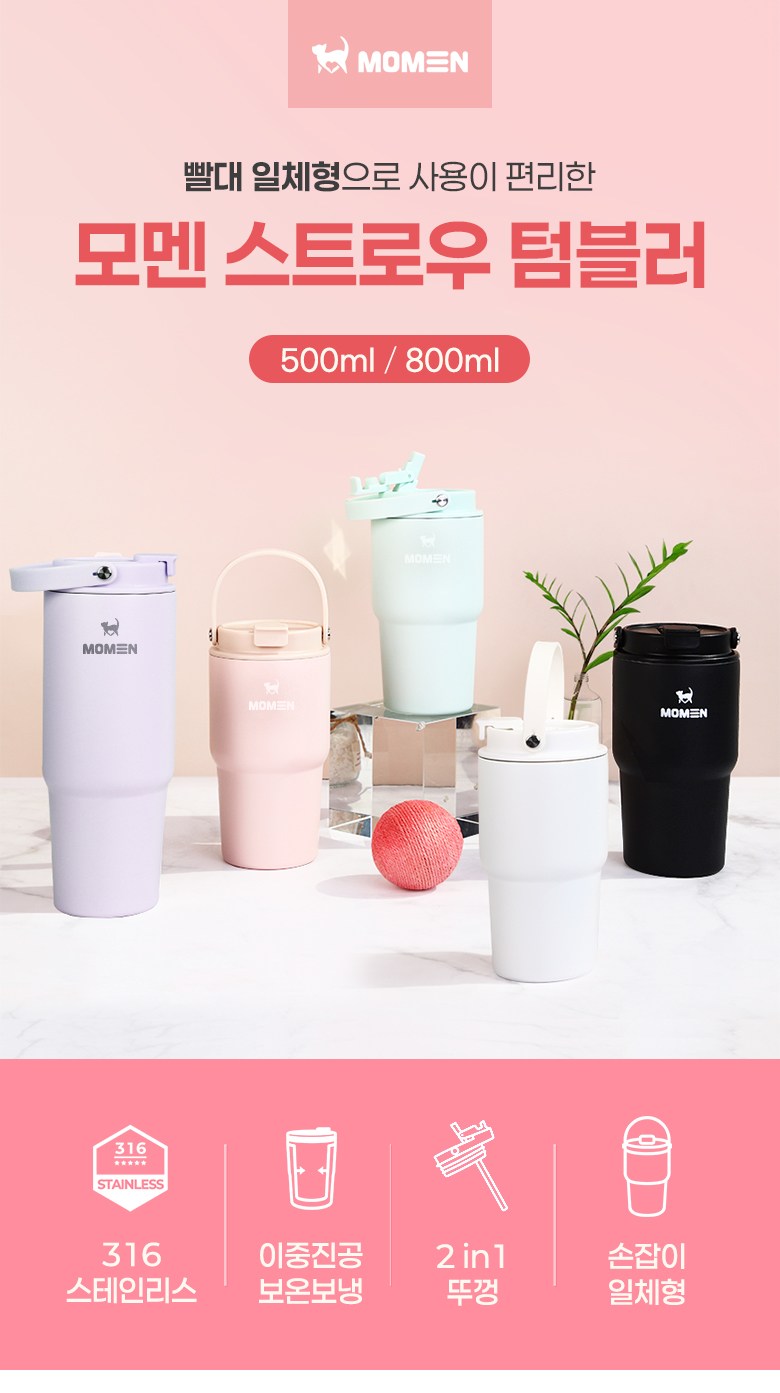 | 품명 및 모델명 | 모멘 스트로우 텀블러 500ml | 재질 | 304스테인리스 스틸 |