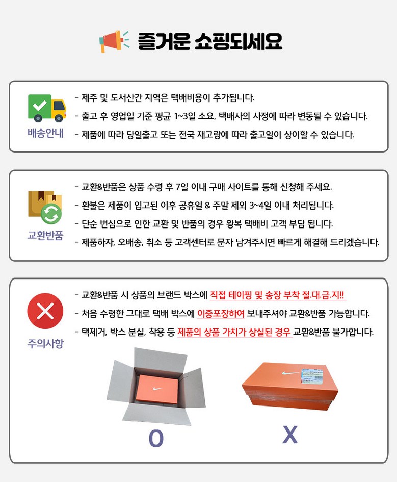 - ㆍ모니터 해상도의 차이로 인해 색상이나 이미지가 실제와 달라, 고객이 단순 변심으로 교환/반품을 무료로 요청하는 경우