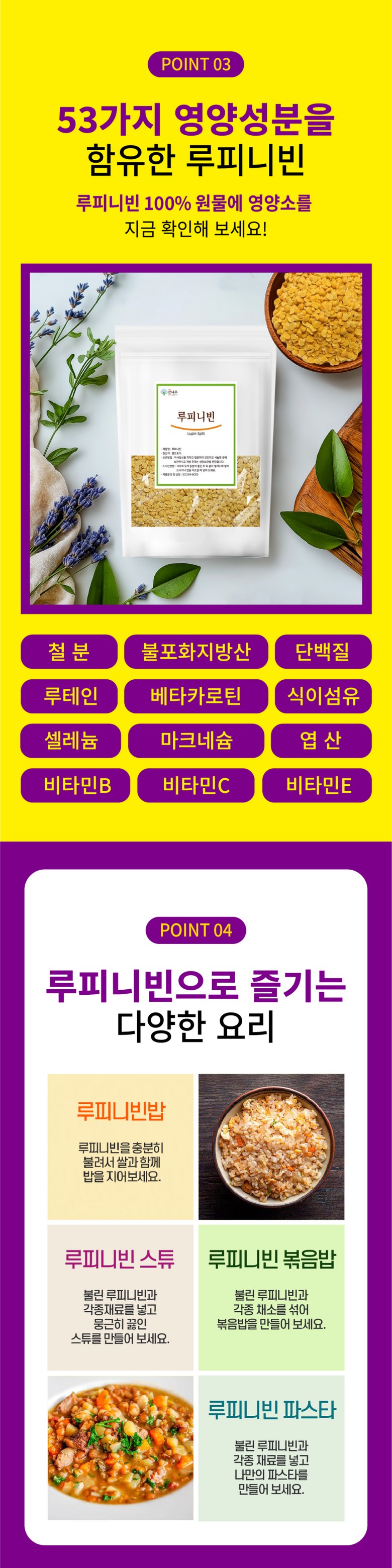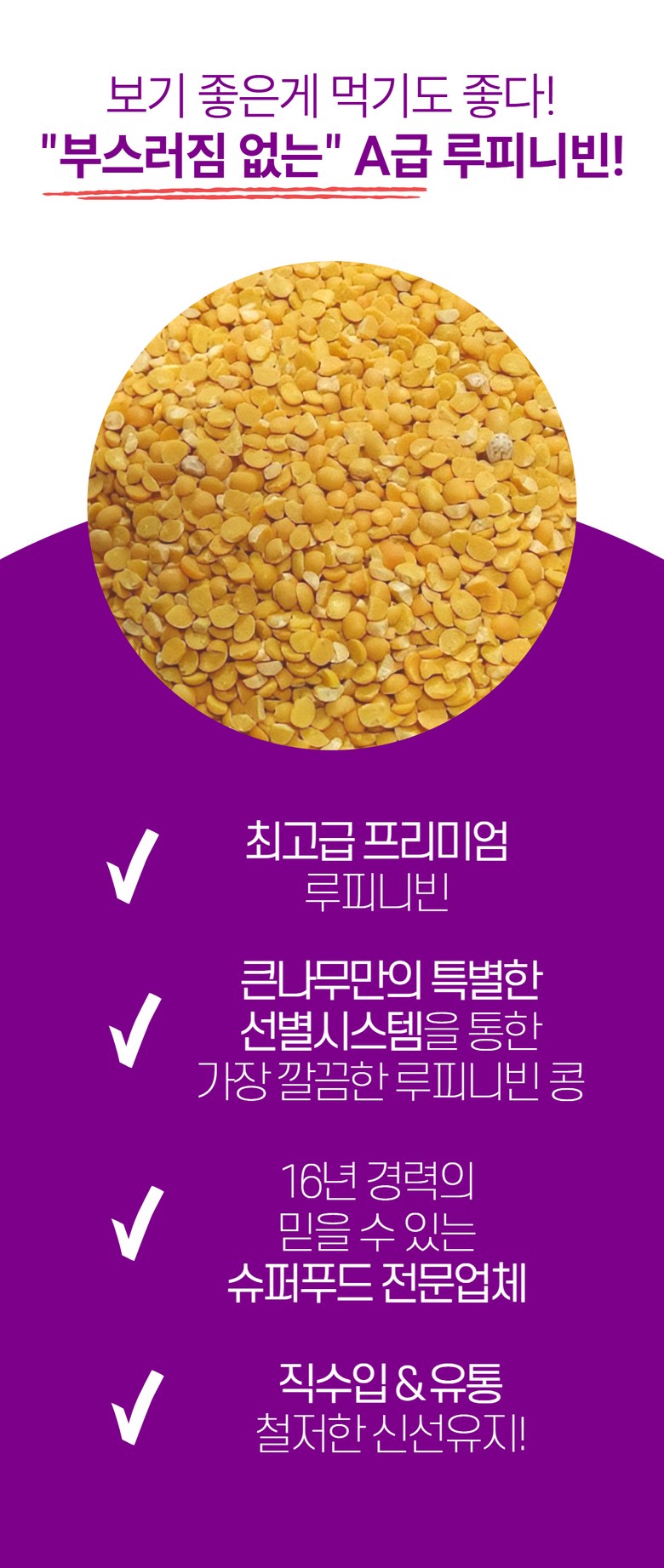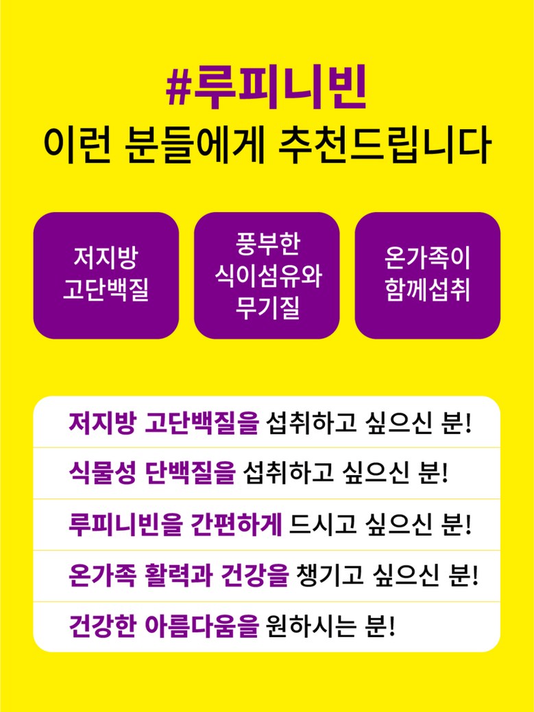 | 품목 또는 명칭 | 루피니빈 | 포장단위별 내용물의 용량(중량),수량,크기 | 1kg 1팩 2팩 3팩 4팩 5팩 10팩 |