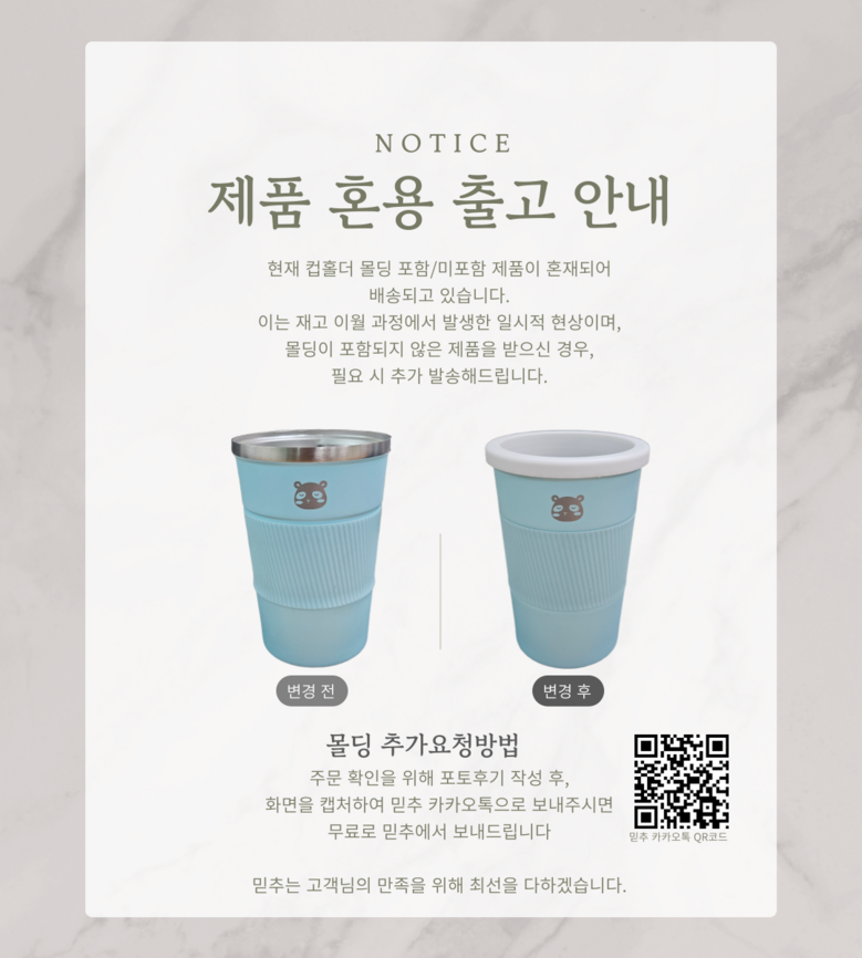 - ㆍ모니터 해상도의 차이로 인해 색상이나 이미지가 실제와 달라, 고객이 단순 변심으로 교환/반품을 무료로 요청하는 경우
