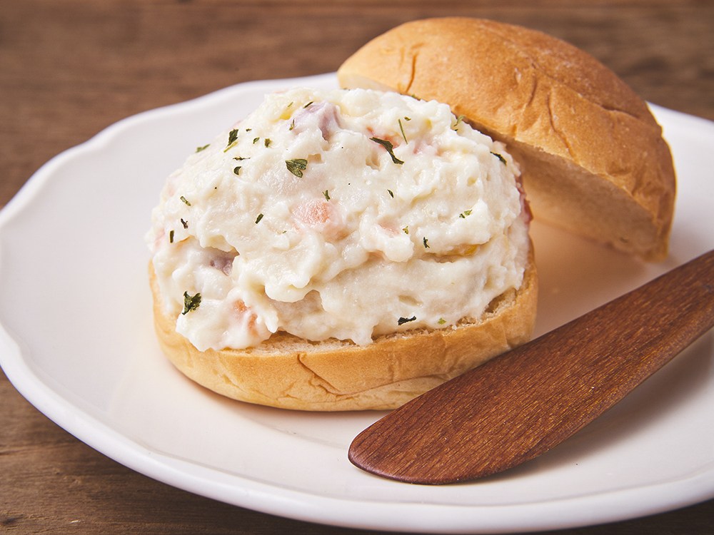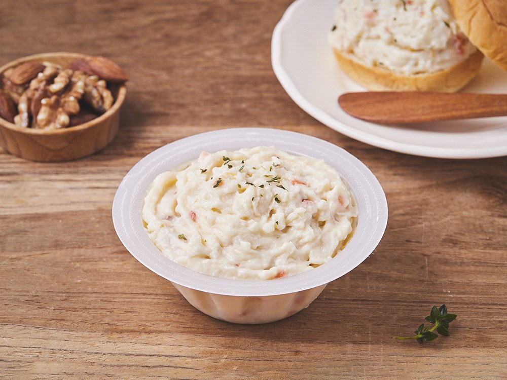 포슬포슬한 감자를 으깨 만든 샐러드예요. 부드러운 식감과 고소한 풍미가 매력적이지요. 아삭한 당근이 콕콕 박혀있어 먹는 재미를 더합니다. 폭신폭신한 모닝빵에 발라 든든한 간식으로 즐겨보세요.