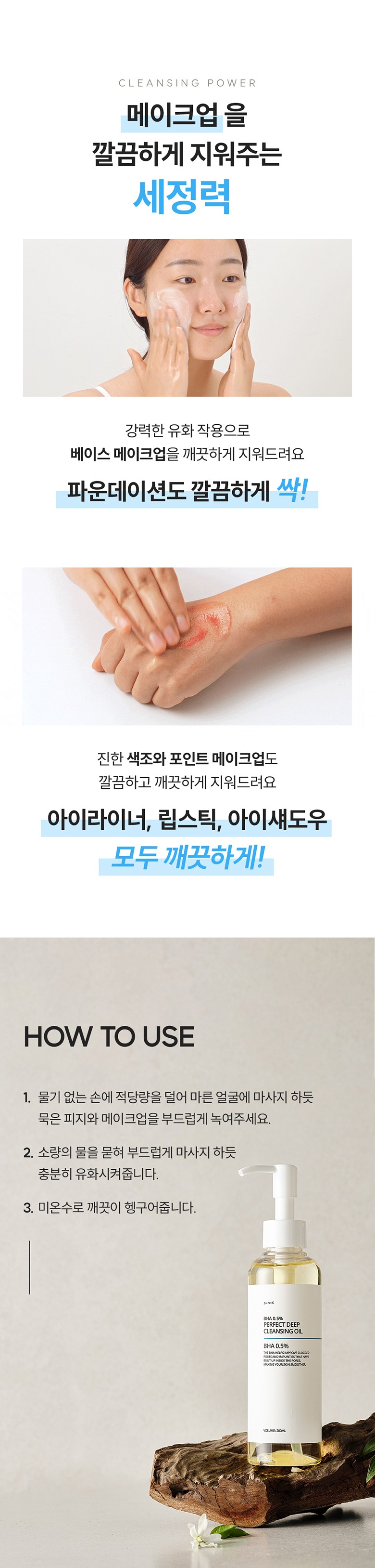 | 사용기한 또는 개봉 후 사용기간 | 30개월 | 사용방법 | 적당량을 덜어 마른 얼굴 전체에 펴 발라 부드럽게 마사지한 후 손에 약간의 물을 묻혀 30초 정도 다시 마사지 (오일이 우윳빛으로 변하는 유화 과정) 하여 미온수로 깨끗이 헹구어 냅니다. |