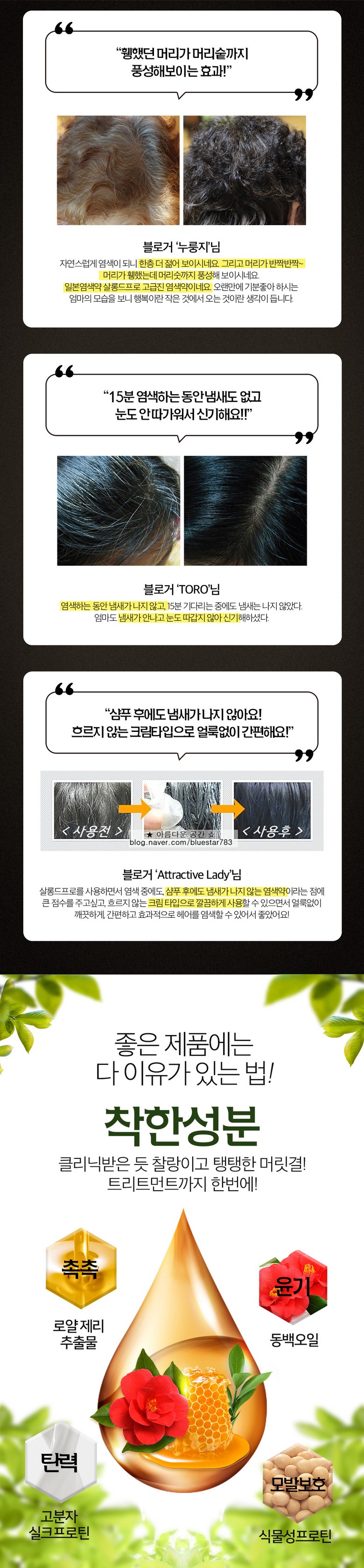 제품 자체의 완성도를 바탕으로 오랜 기간 입소문을 통해 선택되어 온 염색약입니다.