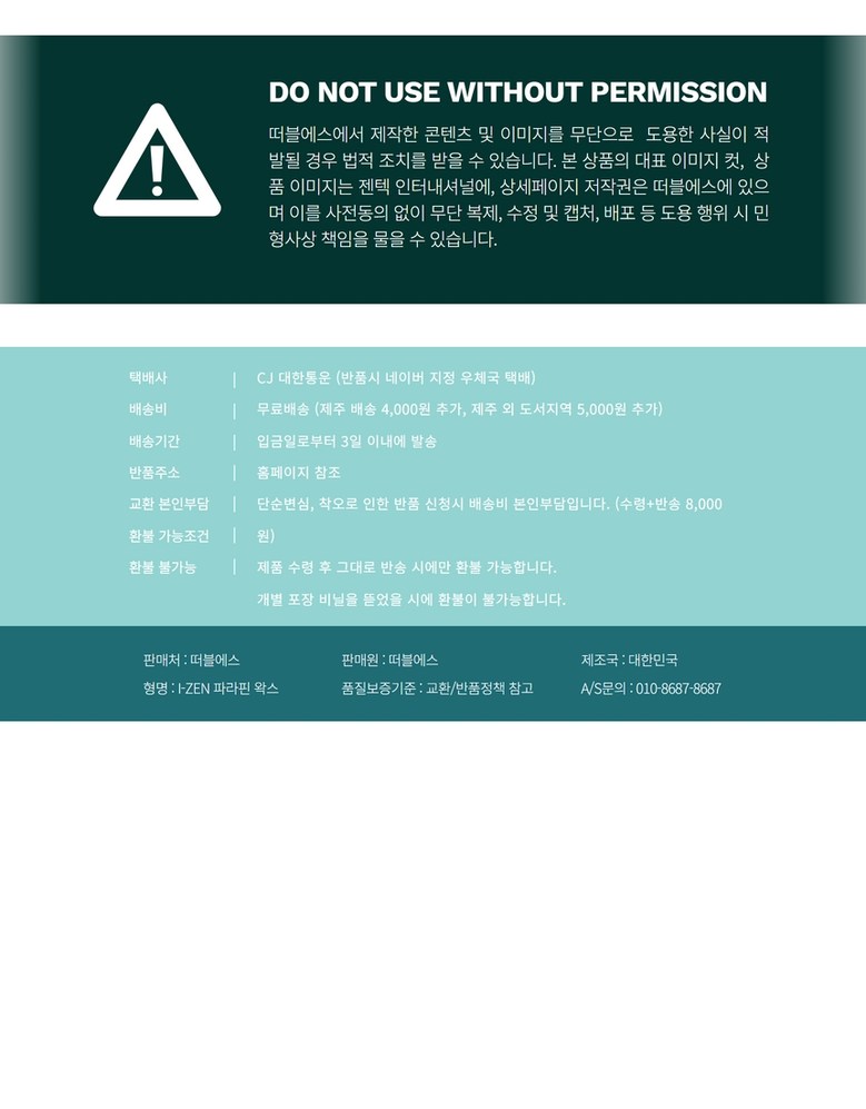 - ㆍ모니터 해상도의 차이로 인해 색상이나 이미지가 실제와 달라, 고객이 단순 변심으로 교환/반품을 무료로 요청하는 경우