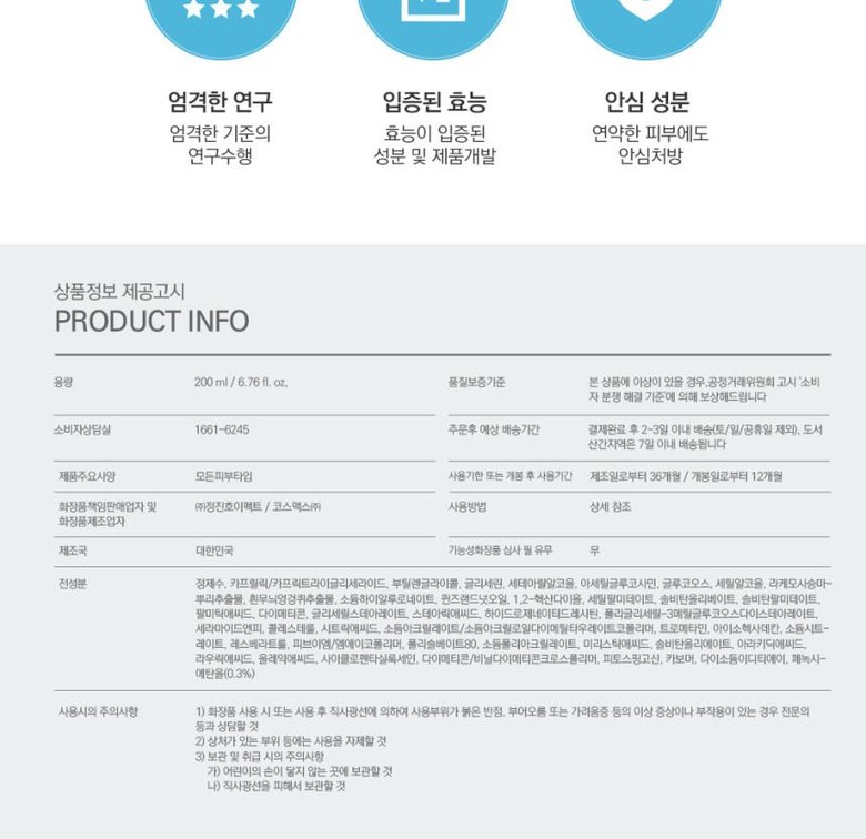 | 용량(중량) | 200ml | 제품 주요 사양 | 상품 상세페이지 참조 |
