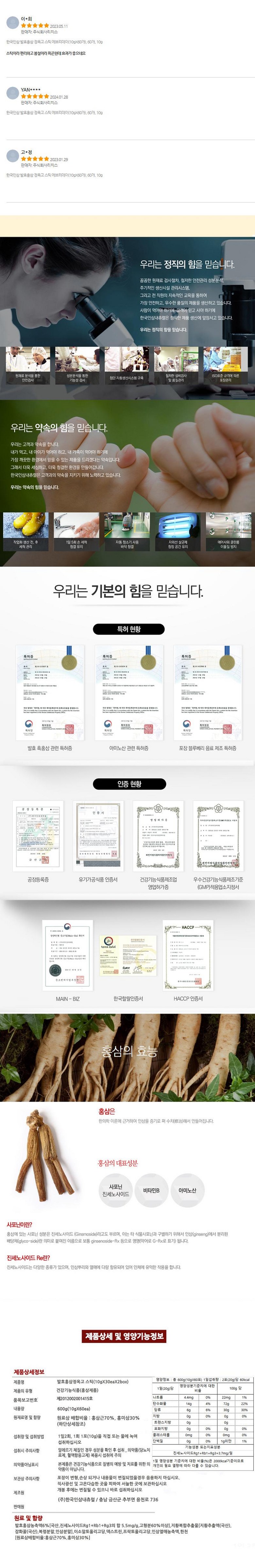 | 제품명 | 발효홍삼정옥고스틱(10gX60개) | 제조업소의 명칭과 소재지 | 상품 상세페이지 참조 |