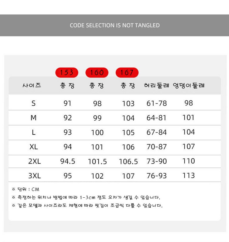 - 하의 사이즈: 여성 XL