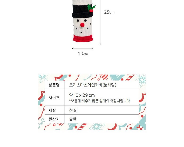 | 품명 및 모델명 | 크리스마스 와인커버 | 인증/허가 사항 | 상품 상세페이지 참조 |