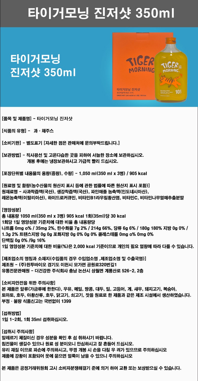| 포장단위별 내용물의 용량(중량), 수량 | 상품 상세페이지 참조 | 원재료명 및 함량 | 상품 상세페이지 참조 |