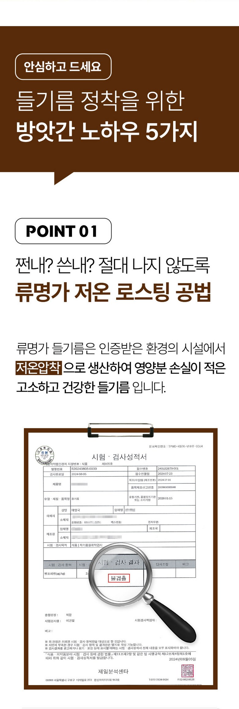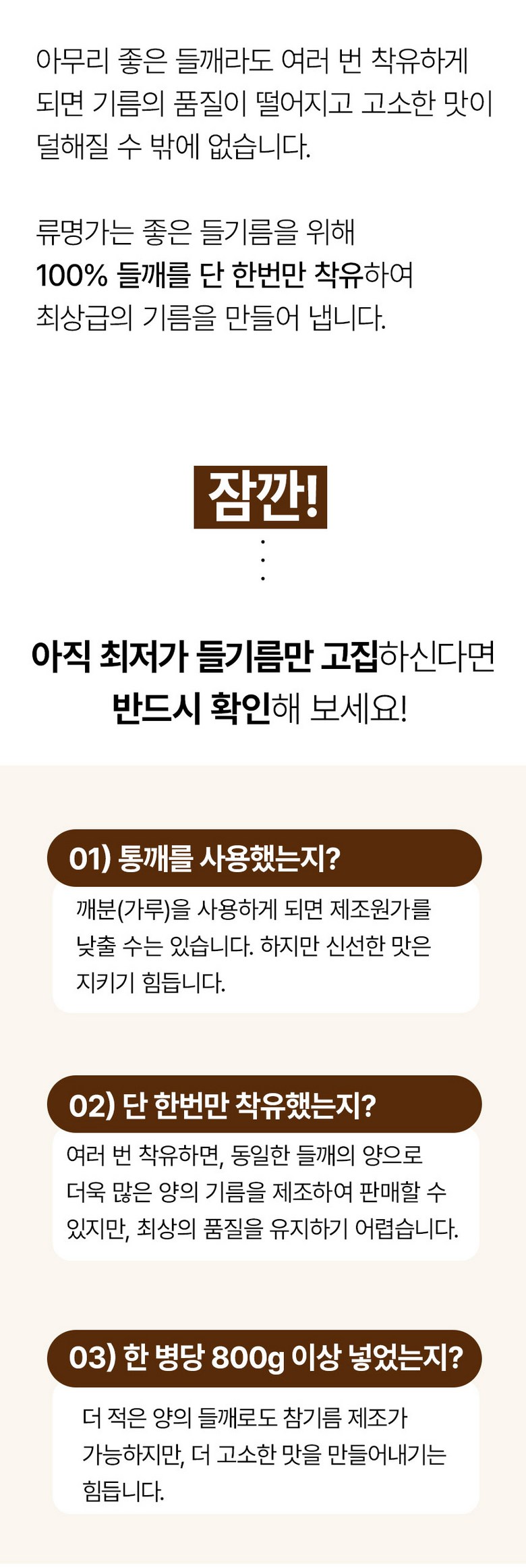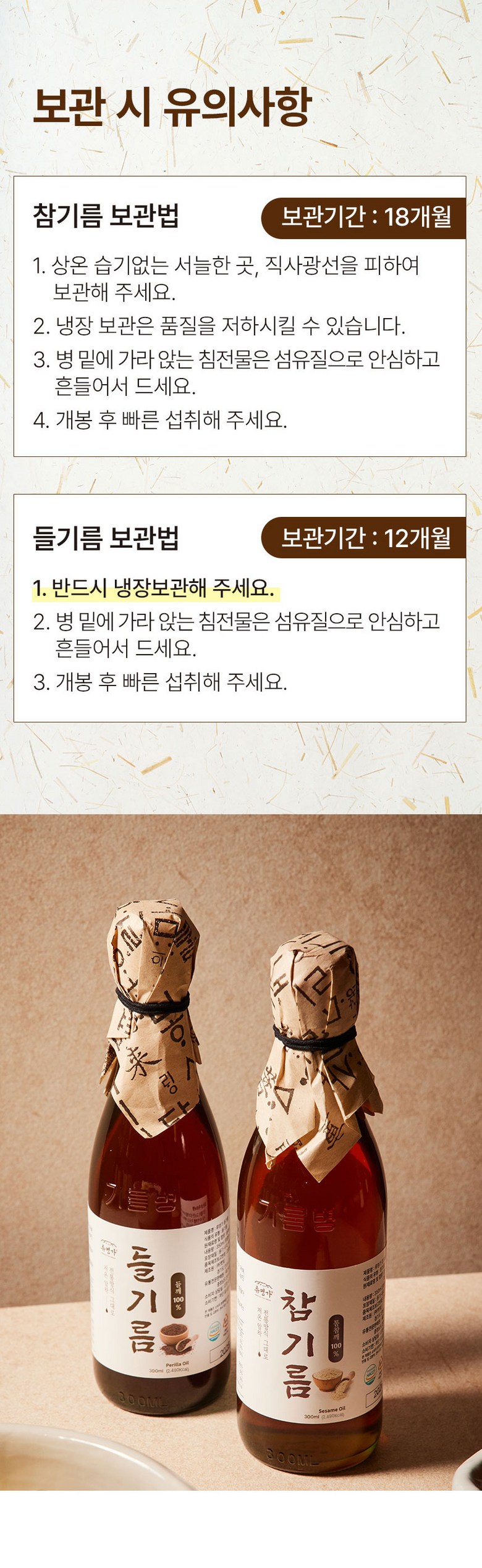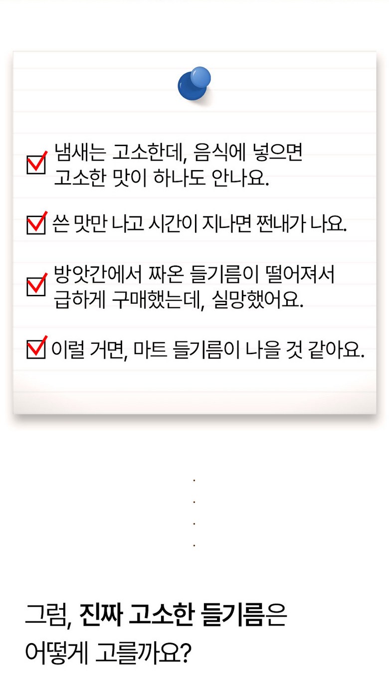 - 생들기름 여부: 생들기름