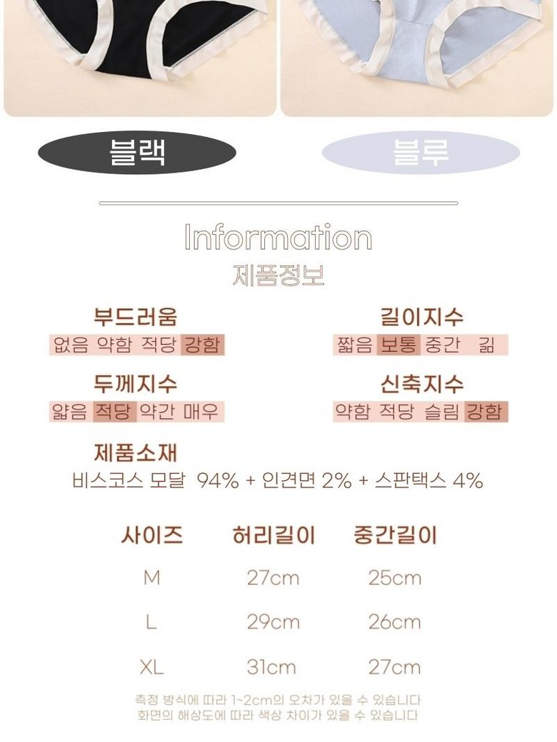 | 종류 | 여성속옷 | 소재 | 모달+스판택스 |