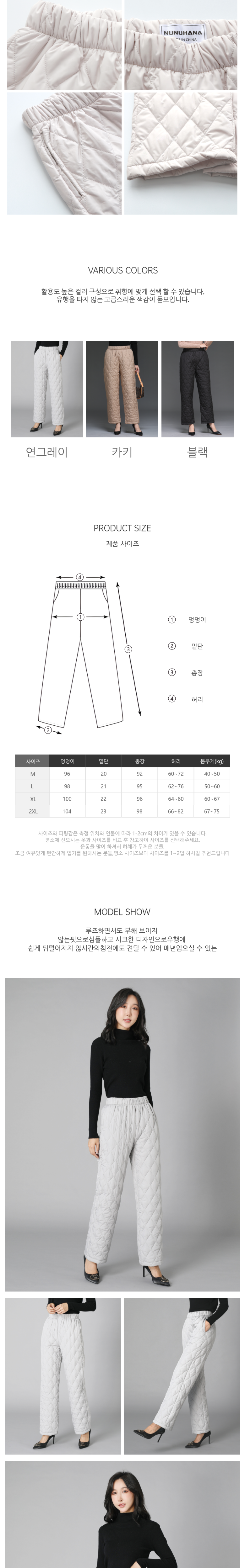- 하의 사이즈: 여성 L (29~30인치)