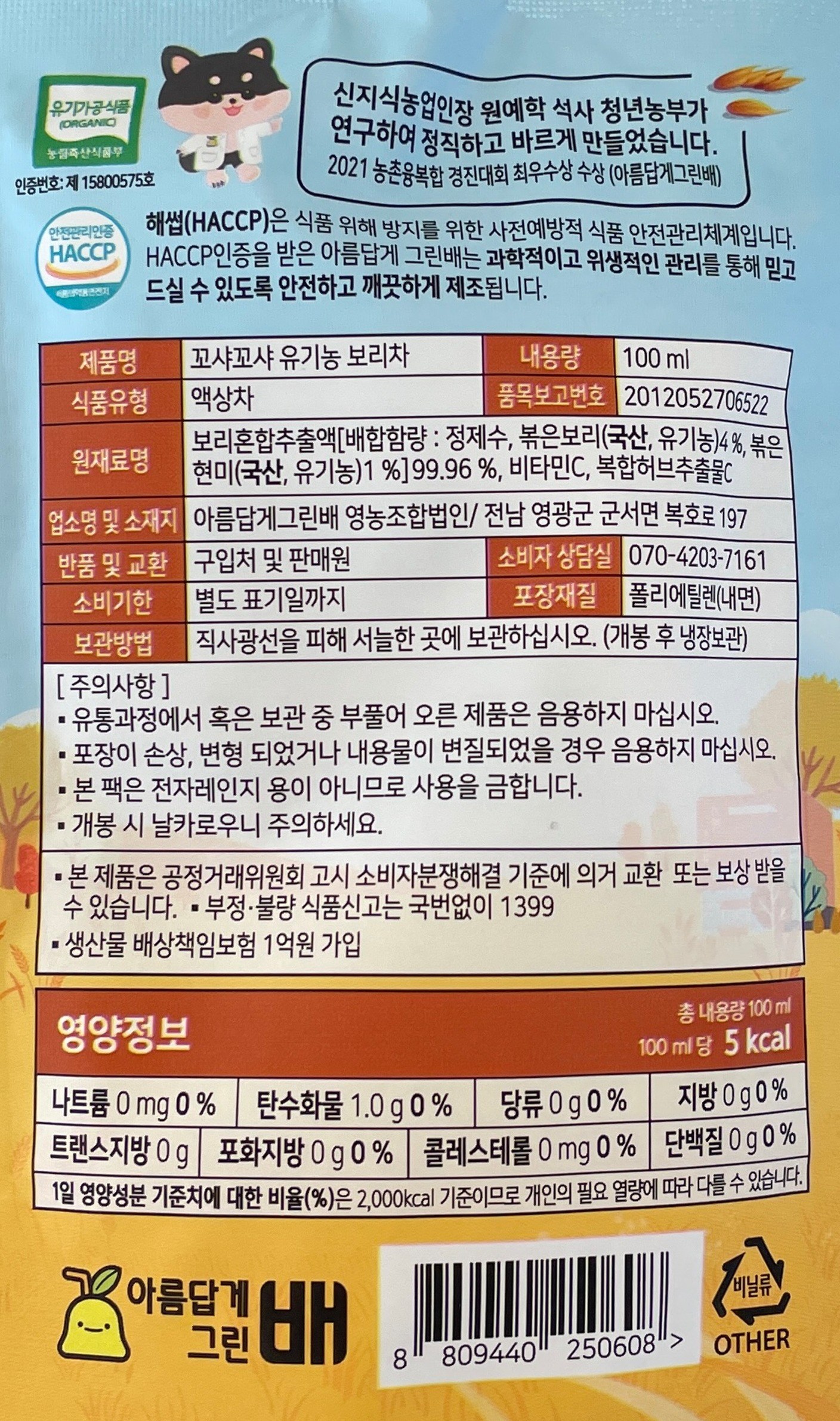 | 포장단위별 내용물의 용량(중량), 수량 | 100ml x 90개 | 원재료명 및 함량 | 컨텐츠 참조 |