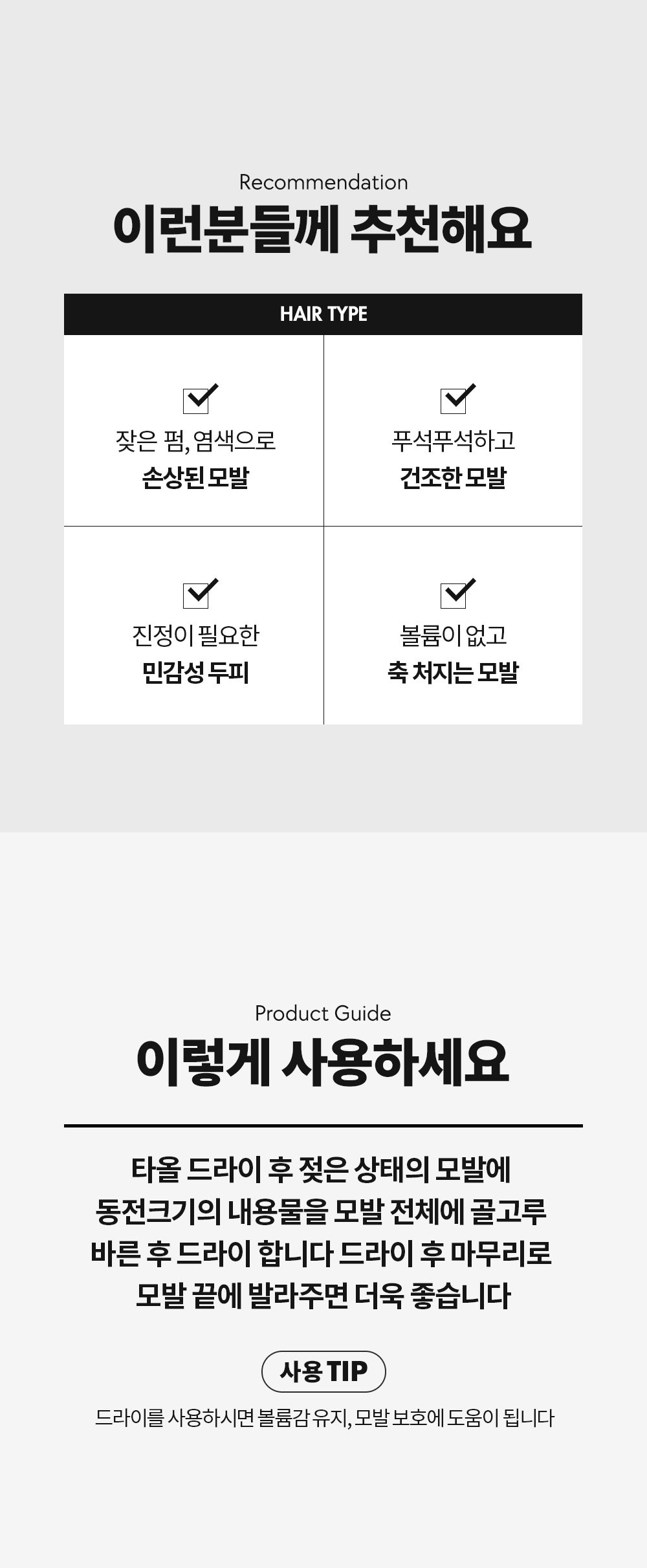 - 헤어케어 타입: 수분/영양