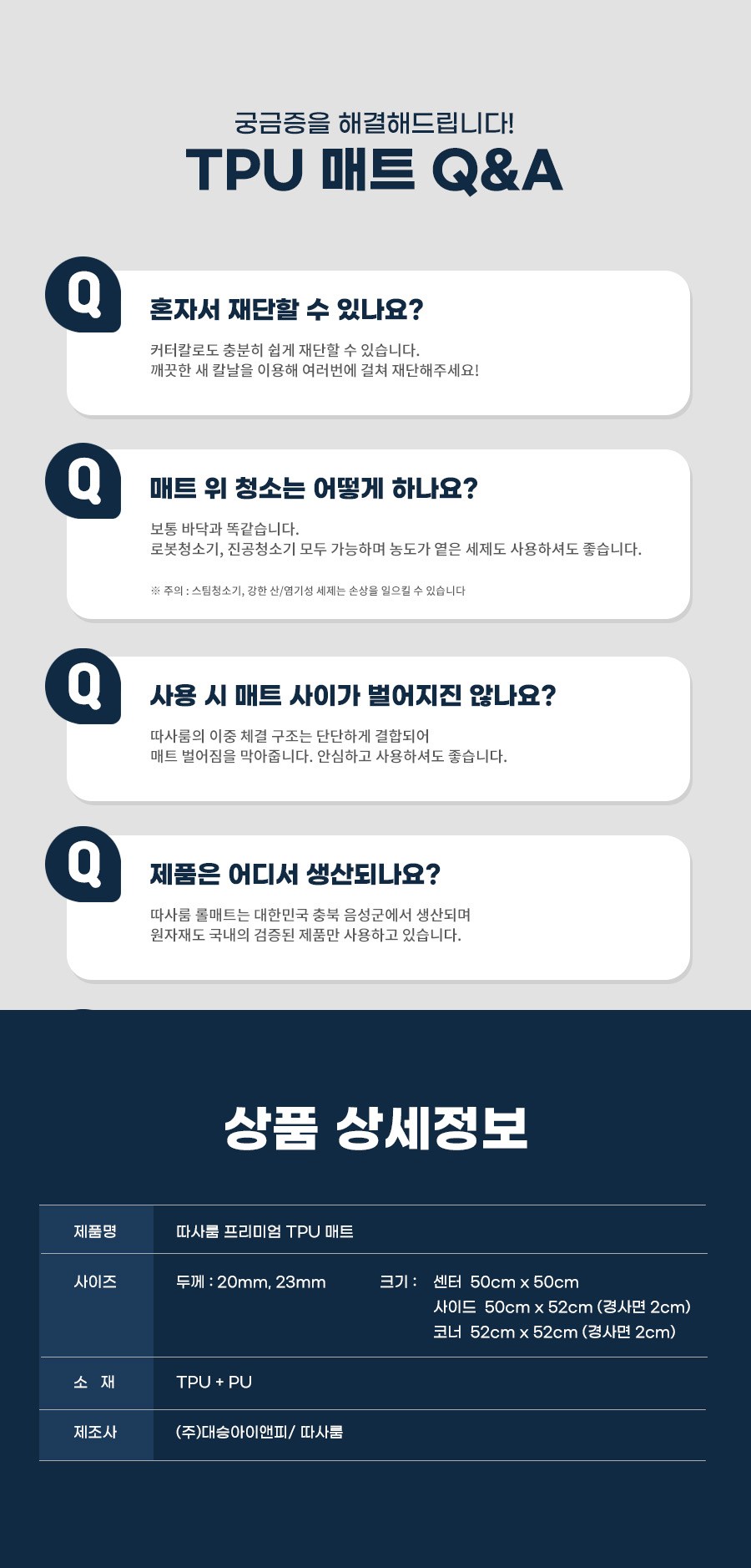 | 품명 및 모델명 | 따사룸 유아용 TPU 전문가 시공매트 센터 + 사이드 | KC 인증정보 | CB021J012-1003 |
