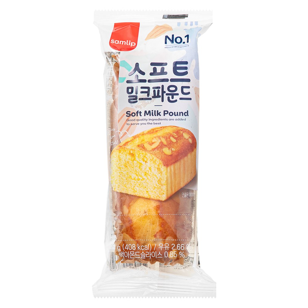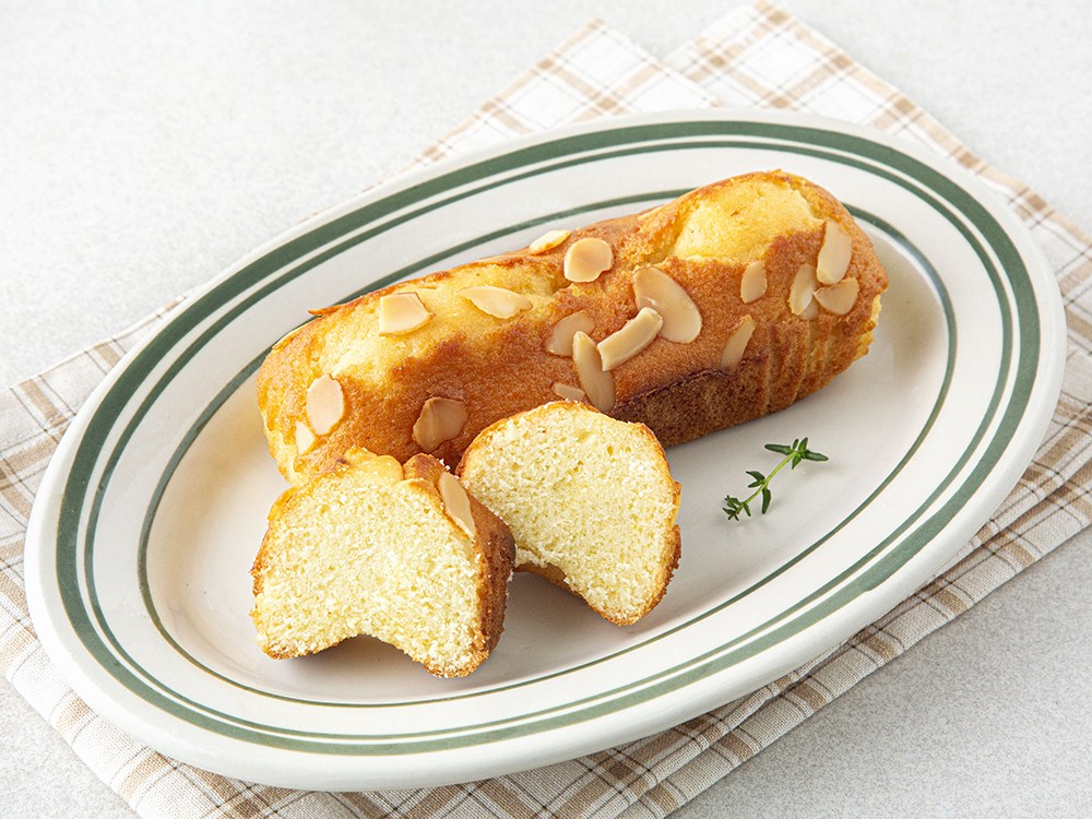 부드러운 식감의 밀크파운드예요. 한손으로 먹기 좋은 크기인데요. 한입 먹으면 혀끝에서 사르르 녹으며 고소한 풍미를 선사합니다. 백아몬드슬라이스가 뿌려져 오독한 식감을 더하지요. 우유를 곁들여 촉촉하게 즐겨보세요.