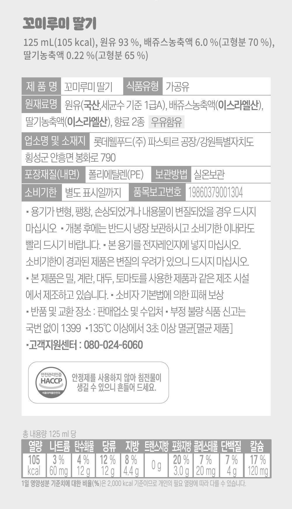 | 포장단위별 내용물의 용량(중량), 수량 | 125ml*24개 | 원재료명 및 함량 | 컨텐츠 참조 |