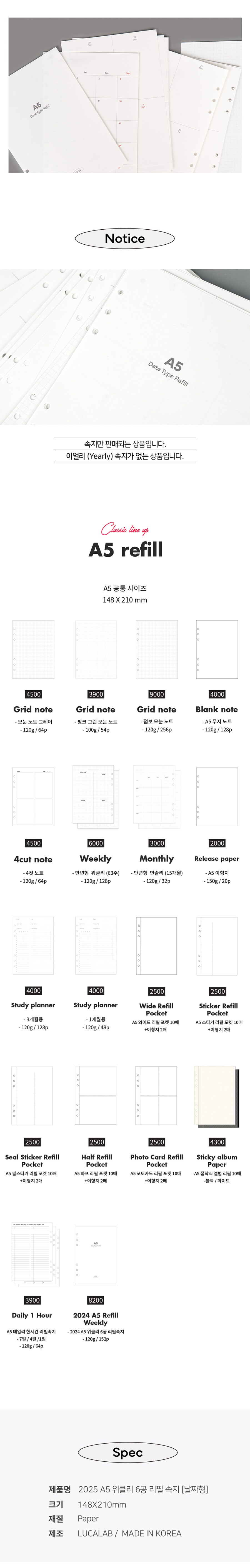 | 품명 및 모델명 | [루카랩]2025년 A5 날짜형 리필 속지 | 인증/허가 사항 | 해당없음[전문가용] |