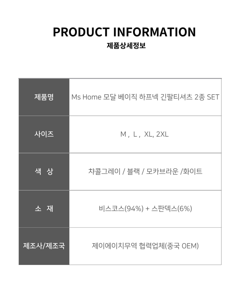 | 제품 소재 | 비스코스(모달)94% + 스판덱스 6% | 색상 | 상품 상세페이지 참조 |
