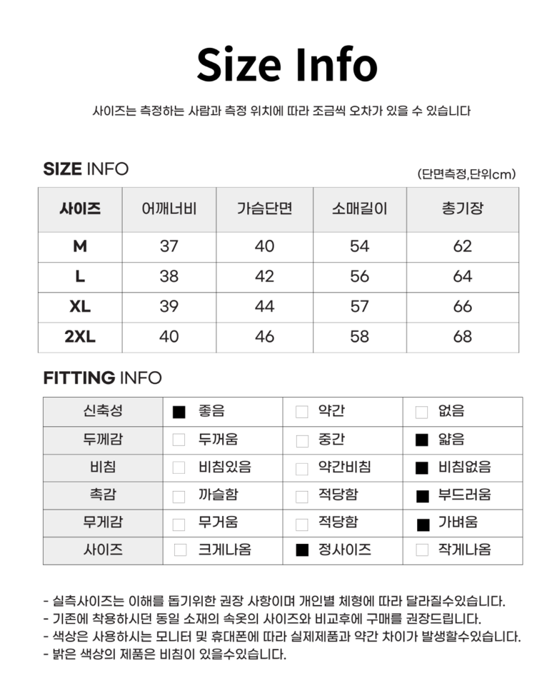 - 사용계절: 봄/가을용
