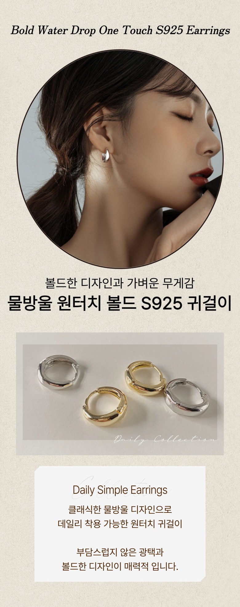 신상특가 1+1 물방울 원터치 볼드 S925 은귀걸이