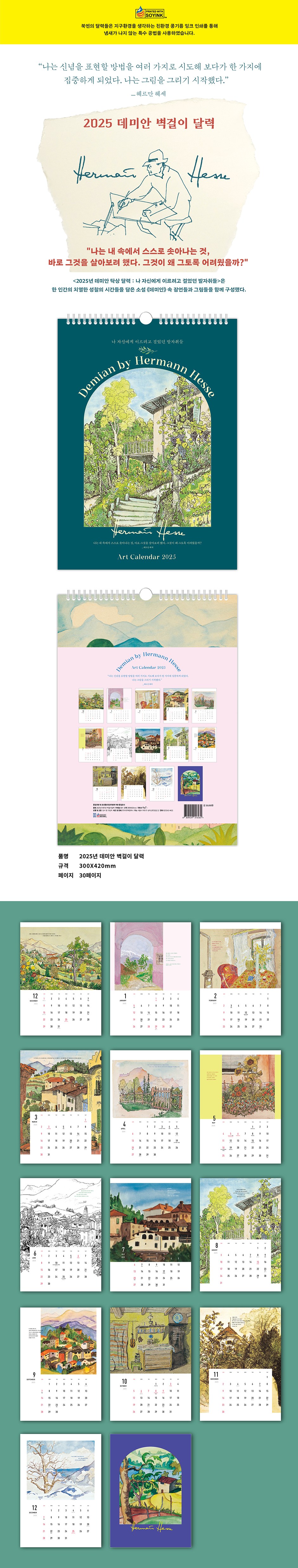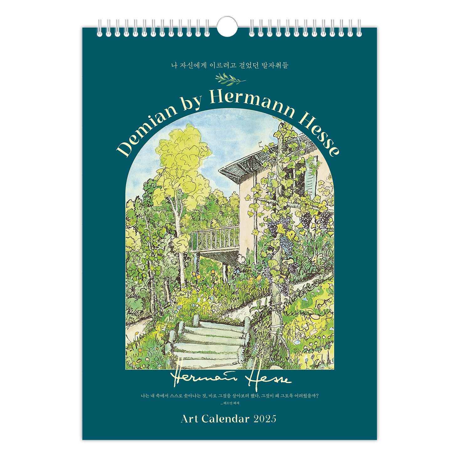 <2025년 헤르만 헤세의 데미안 벽걸이달력(A3)>은 한 인간의 치열한 성찰의 시간들을 그린 소설 《데미안》 속 잠언들과 헤세의 그림들을 함께 담았다.
